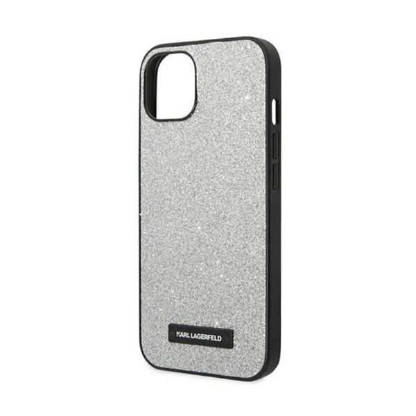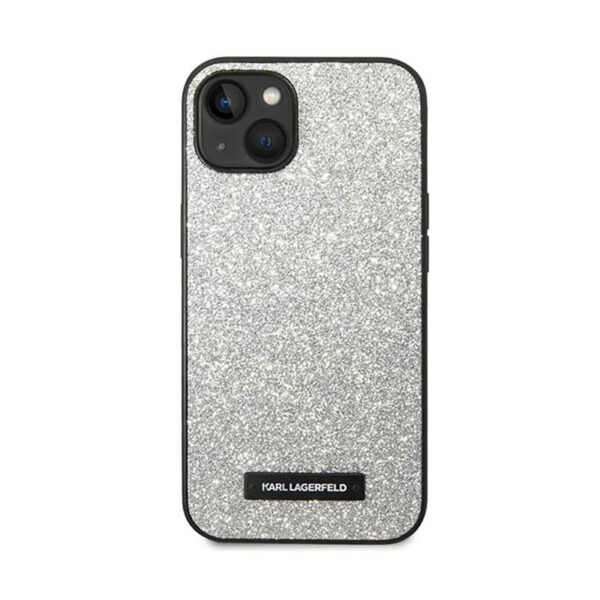 Karl Lagerfeld Glitter Plaque Logo – dėklas skirtas Apple iPhone 14 Plus Silver