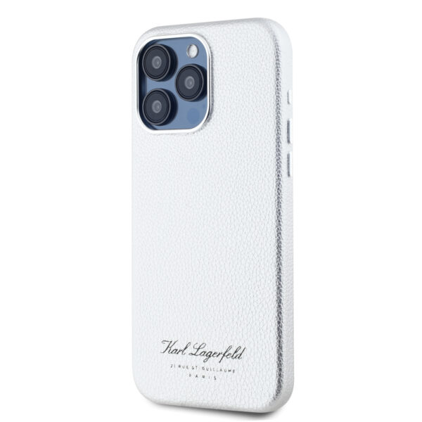 Karl Lagerfeld Grained PU Hotel RSG dėklas telefonui Apple iPhone 15 Pro pilkos spalvos