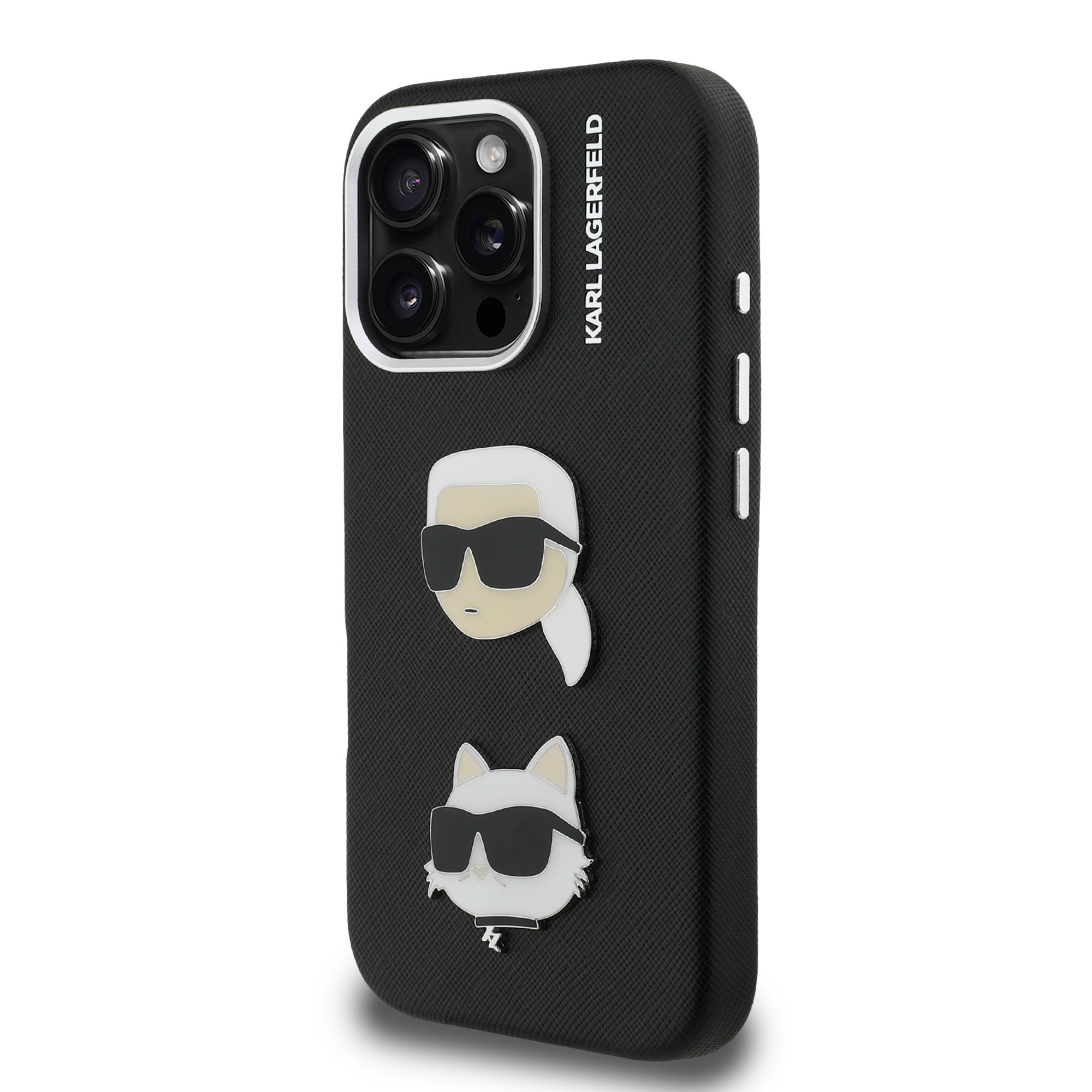 Karl Lagerfeld Grained PU K&CH Heads dėklas skirtas Apple iPhone 16 Pro juodos spalvos