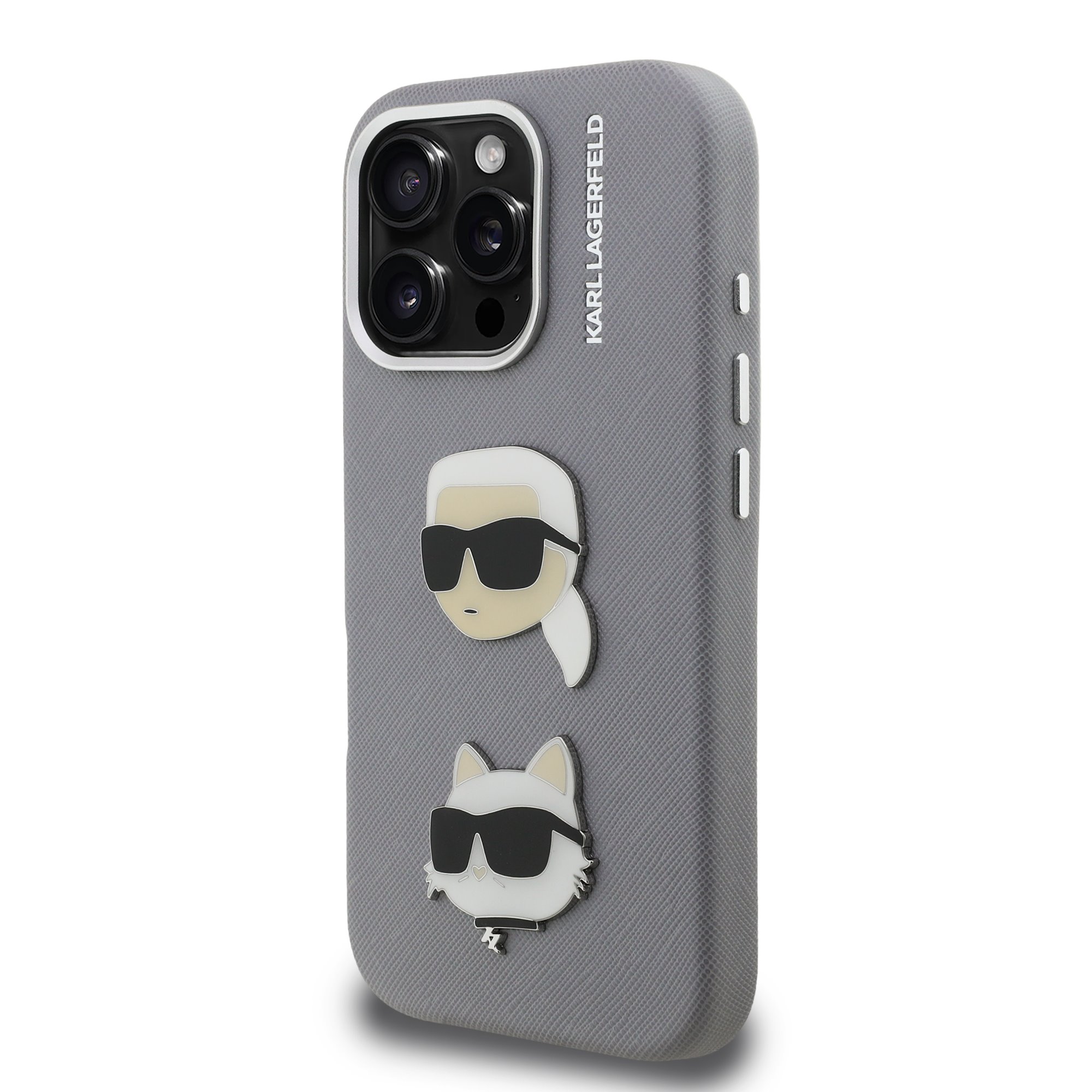 Karl Lagerfeld Grained PU K&CH Heads dėklas skirtas Apple iPhone 16 Pro Max pilkos spalvos