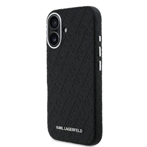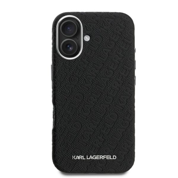 Karl Lagerfeld Grained PU Repeated Logo MagSafe dėklas skirtas Apple iPhone 16 juodos spalvos