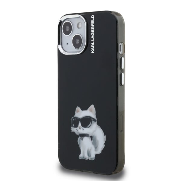 Karl Lagerfeld IML Aquarelle Choupette dėklas Apple iPhone 15 juodos spalvos