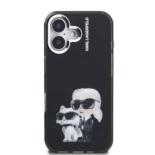 Karl Lagerfeld IML Aquarelle Karl and Choupette dėklas Apple iPhone 16 juodos spalvos