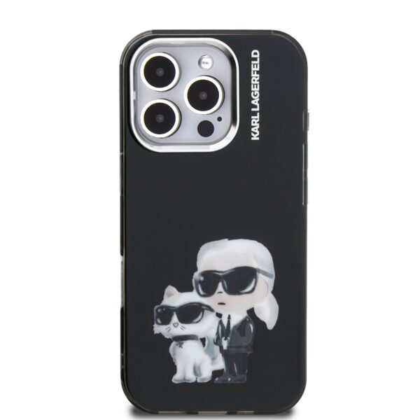 Karl Lagerfeld IML Aquarelle Karl and Choupette dėklas Apple iPhone 16 Pro juodos spalvos