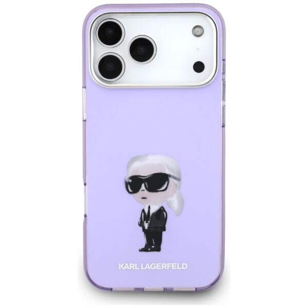 Karl Lagerfeld IML Aquarelle Karl & Choupette & Logo MagSafe Dėklas skirtas Apple iPhone 17 Pro Max violetinės spalvos