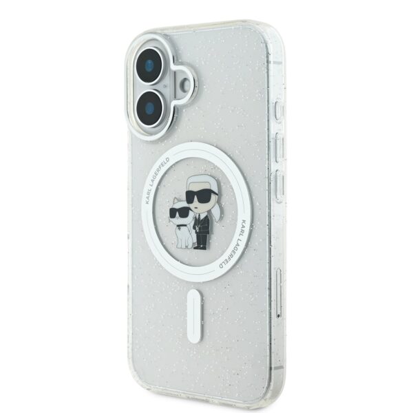 Karl Lagerfeld IML Glitter Karl and Choupette MagSafe Apple iPhone 16 dėklas telefonui skaidrus