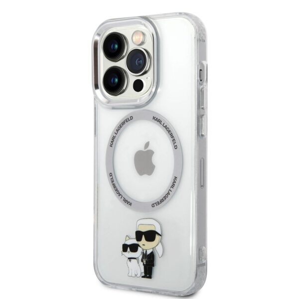 Karl Lagerfeld IML Karl and Choupette MagSafe dėklas telefonui Apple iPhone 15 Pro skaidrus