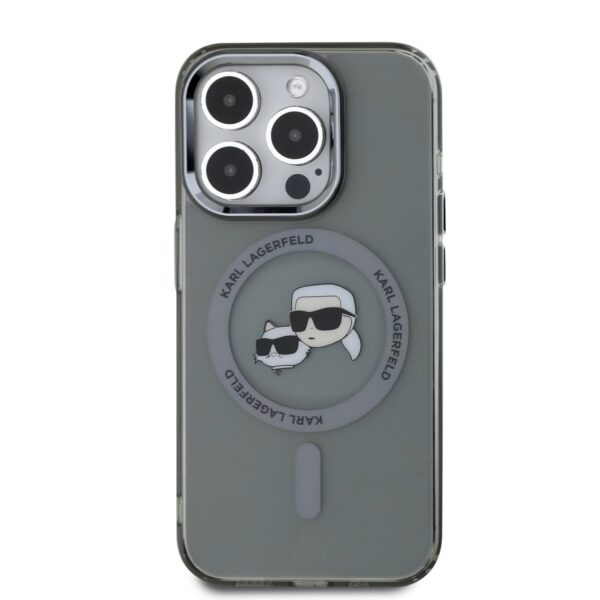 Karl Lagerfeld IML K&CH Heads Metal Frame MagSafe dėklas telefonui Apple iPhone 15 Pro juodos spalvos