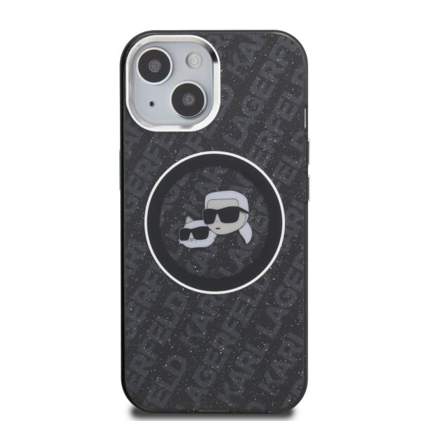 Karl Lagerfeld IML K&CH Heads Repeated Logo MagSafe dėklas Apple iPhone 15 juodos spalvos