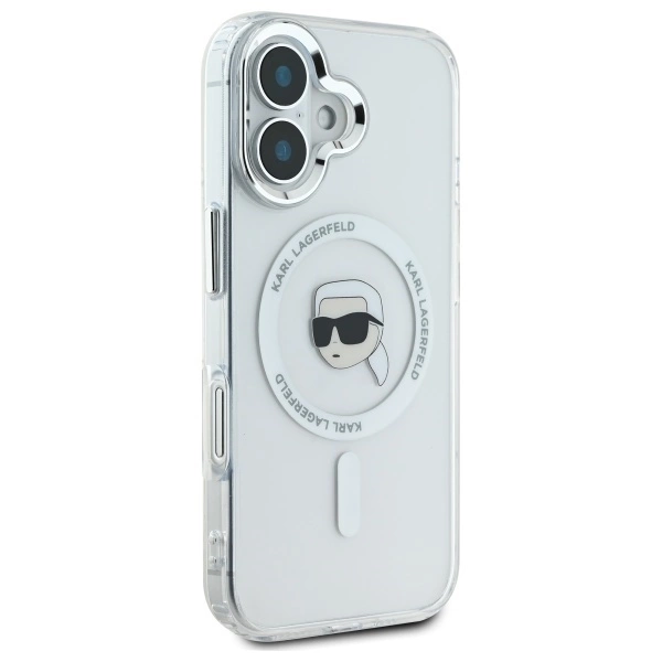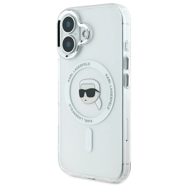 Karl Lagerfeld IML Metal Karl Head MagSafe Apple iPhone 16 – dėklas telefonui baltos spalvos