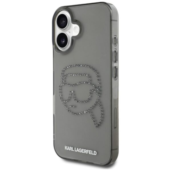 Karl Lagerfeld IML Rhinestones Karl Head Apple iPhone 16 dėklas telefonui juodos spalvos