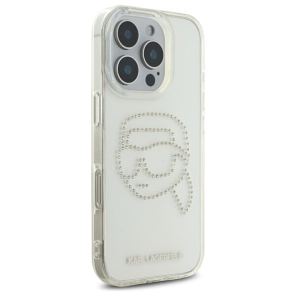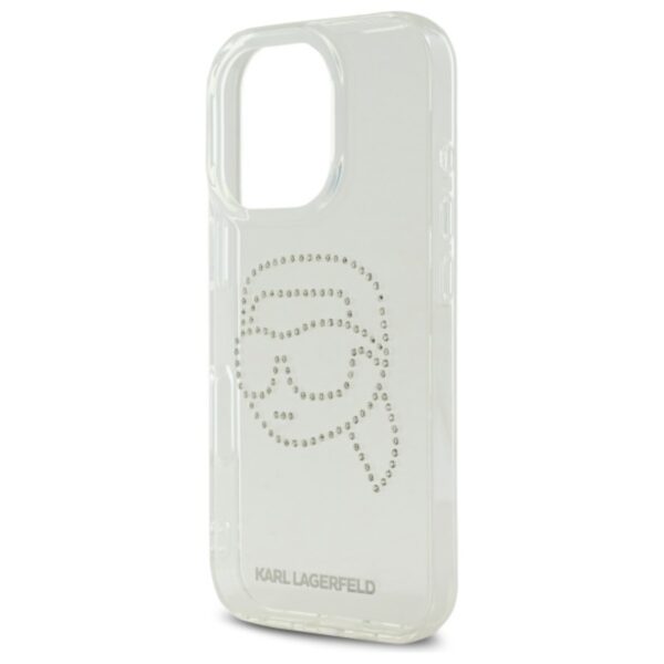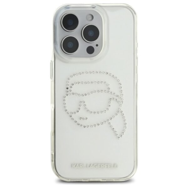 Karl Lagerfeld IML Rhinestones Karl Head – dėklas skirtas Apple iPhone 16 Pro transparent