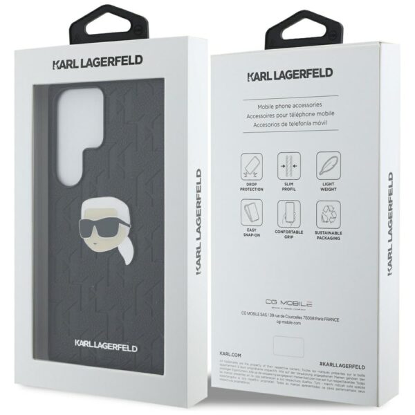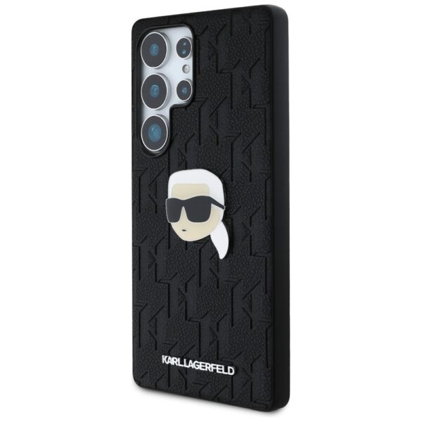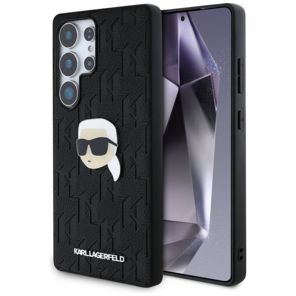 Karl Lagerfeld Leather Monogram Pin Logo Karl Head Samsung Galaxy S25 Ultra dėklas telefonui juodos spalvos