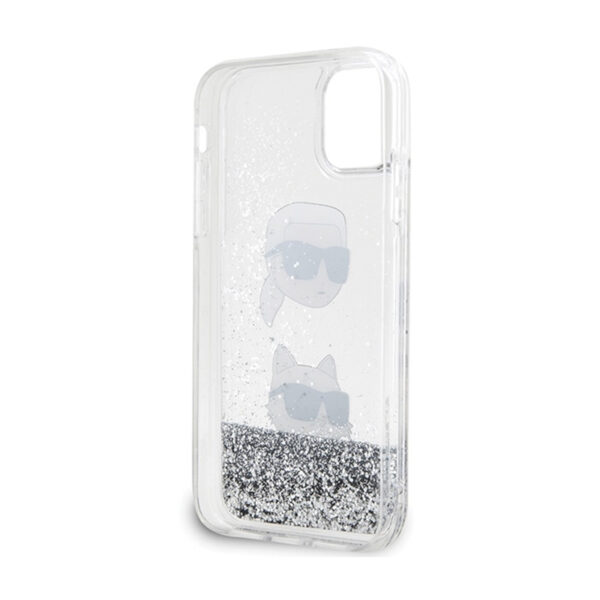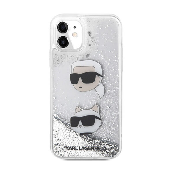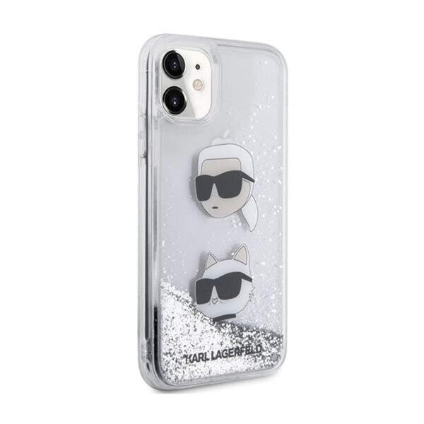 Karl Lagerfeld Liquid Glitter Karl & Choupette Heads – Apple iPhone 11 Case Silver