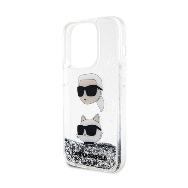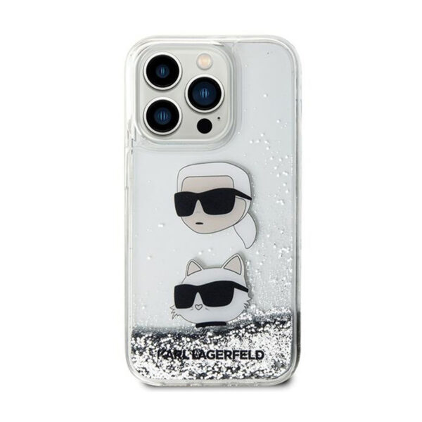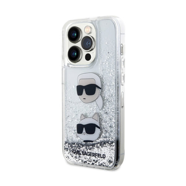 Karl Lagerfeld Liquid Glitter Karl & Choupette Heads – Apple iPhone 14 Pro Max Case Silver