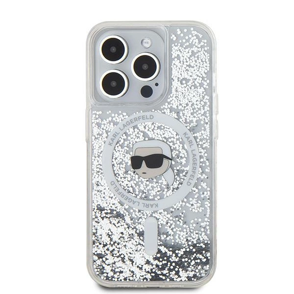 Karl Lagerfeld Liquid Glitter Karl Head MagSafe Apple iPhone 15 Pro – dėklas telefonui skaidrus