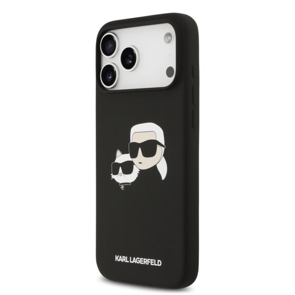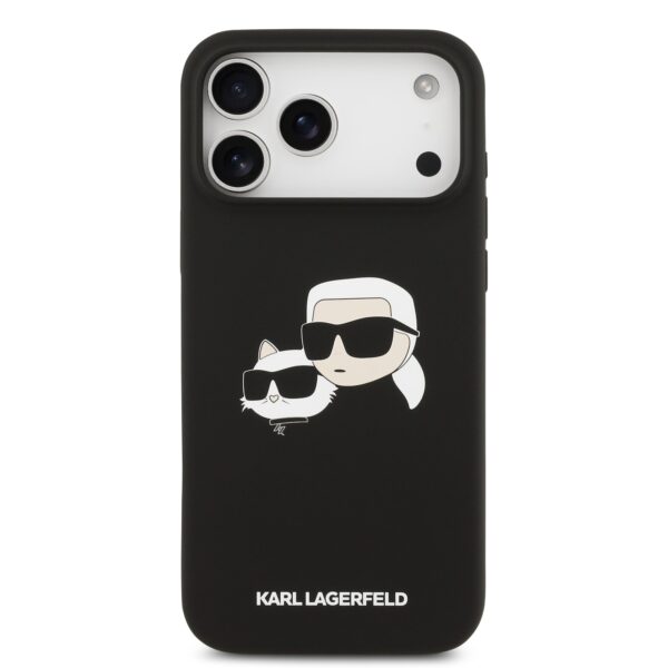 Karl Lagerfeld Liquid Silicone Double Heads MagSafe dėklas skirtas Apple iPhone 17 Pro Max juodos spalvos