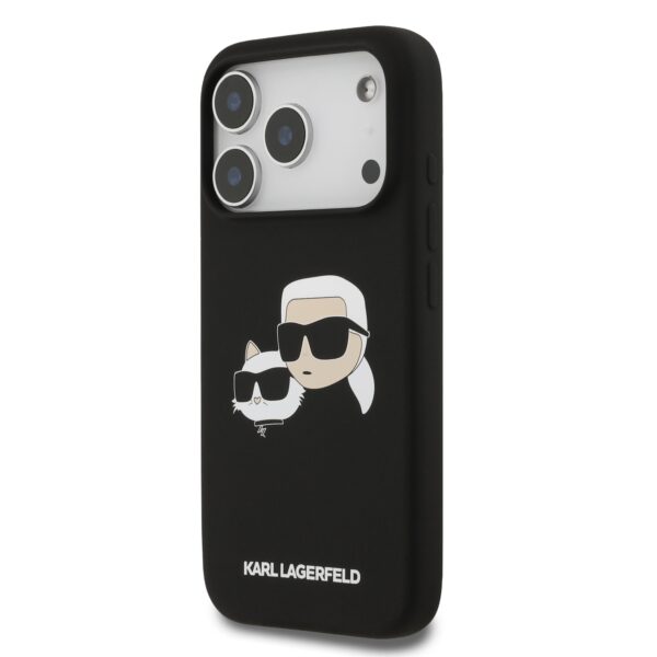 Karl Lagerfeld Liquid Silicone Double Heads MagSafe dėklas skirtas Apple iPhone 17 Pro juodos spalvos