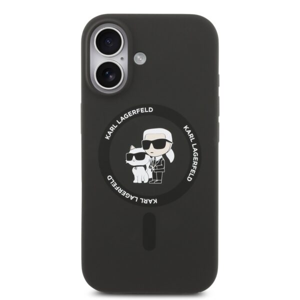 Karl Lagerfeld Liquid Silicone Karl and Choupette MagSafe dėklas skirtas Apple iPhone 17 juodos spalvos