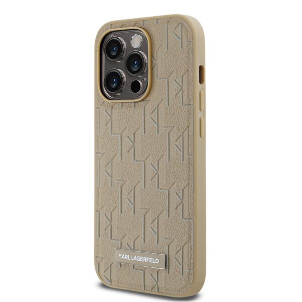 Karl Lagerfeld PU Leather Monogram Metal Logo MagSafe dėklas telefonui Apple iPhone 15 Pro Max Beige