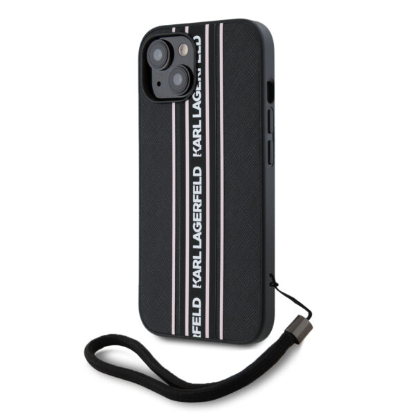 Karl Lagerfeld PU Saffiano Athleisure Stripe and Strap dėklas telefonui Apple iPhone 15 rožinės spalvos
