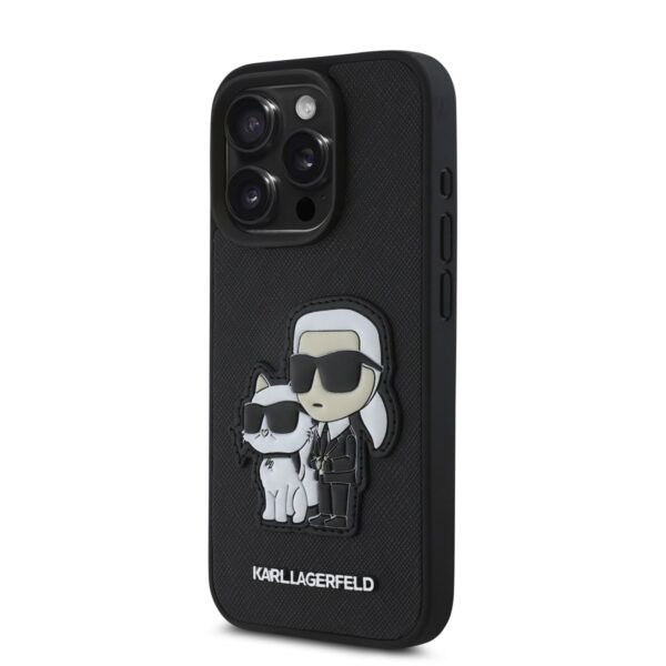 Karl Lagerfeld PU Saffiano Karl and Choupette Apple iPhone 15 Pro dėklas jūsų telefonui juodos spalvos