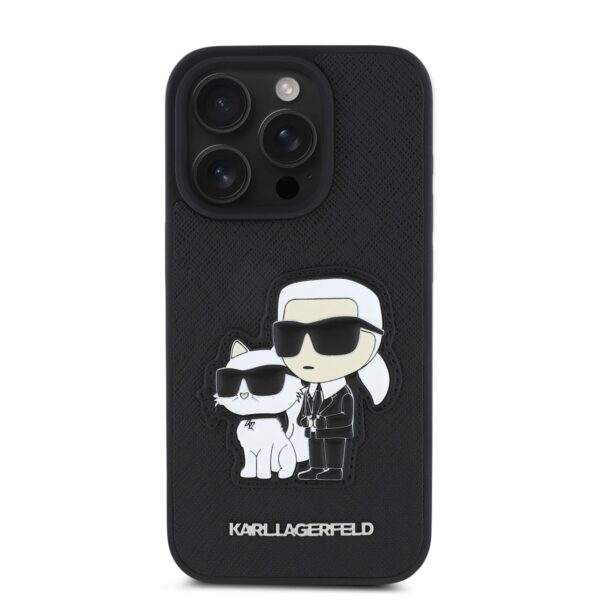 Karl Lagerfeld PU Saffiano Karl and Choupette Apple iPhone 15 Pro Max dėklas jūsų telefonui juodos spalvos