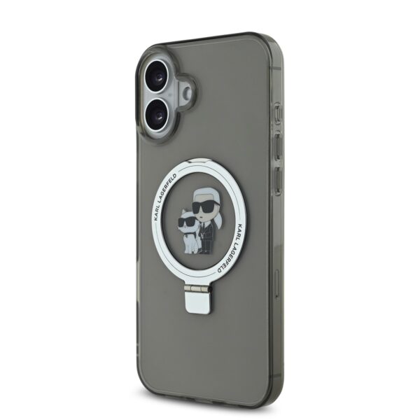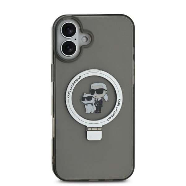Karl Lagerfeld Ringstand Karl and Choupette MagSafe Apple iPhone 16 Plus dėklas telefonui juodos spalvos