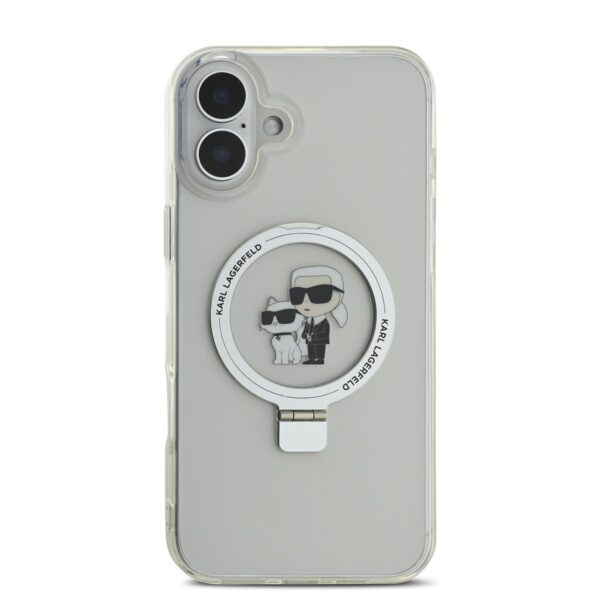 Karl Lagerfeld Ringstand Karl and Choupette MagSafe Apple iPhone 16 Plus dėklas telefonui baltos spalvos