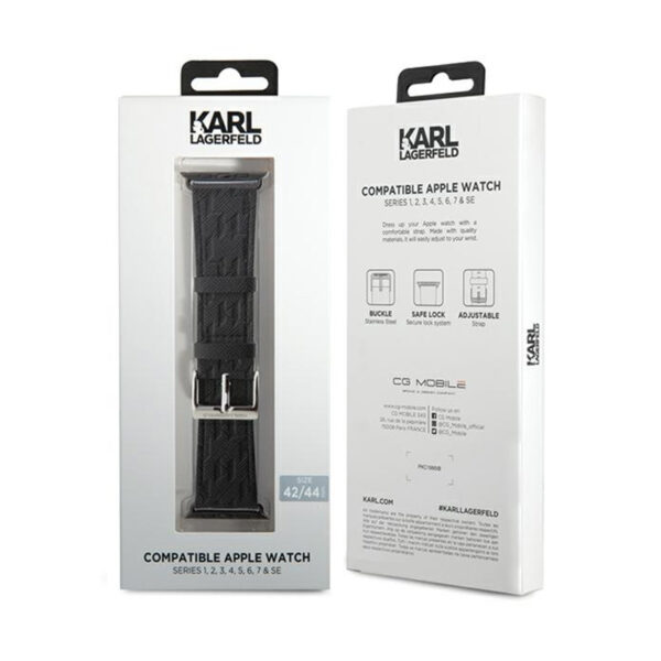 Karl Lagerfeld Saffiano Monogram – Strap for Apple Watch 42/44/45/49 mm (black)