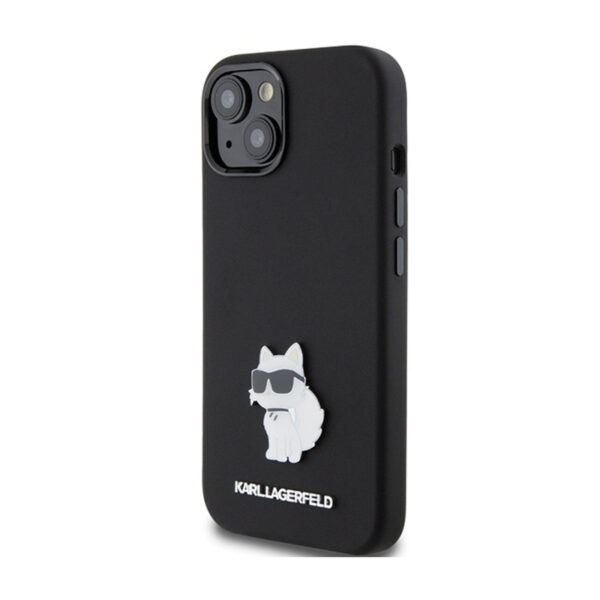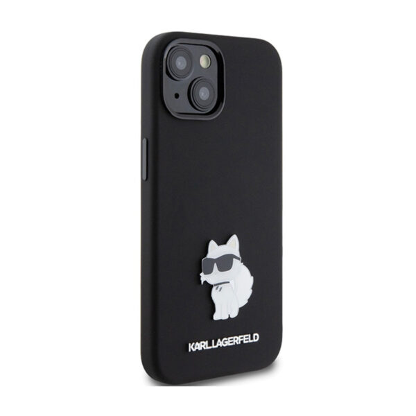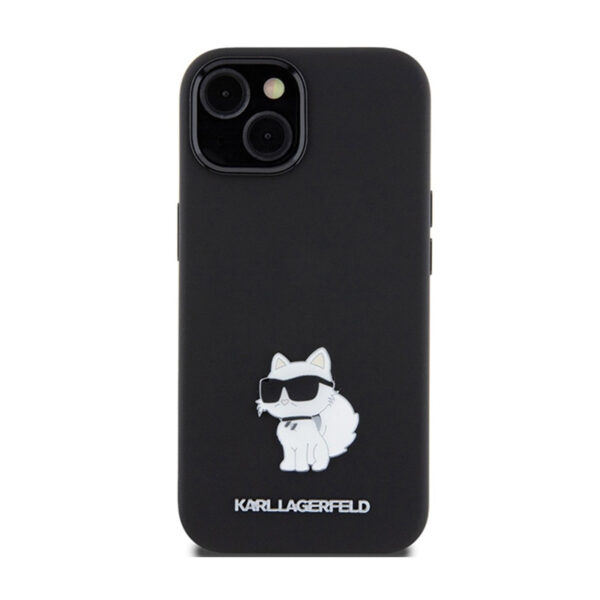 Karl Lagerfeld Silicone Choupette Metal Pin – Apple iPhone 15 Case Black