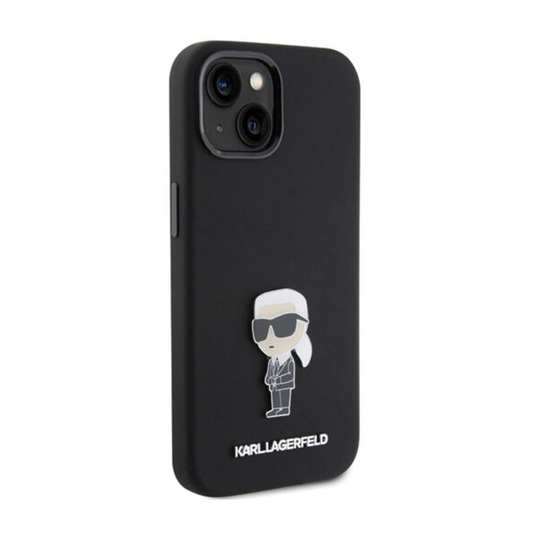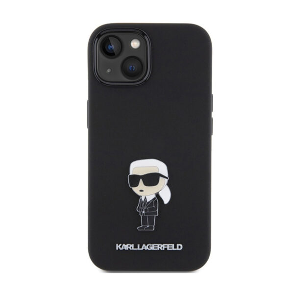 Karl Lagerfeld Silicone Ikonik Metal Pin – Apple iPhone 15 Plus Case Black
