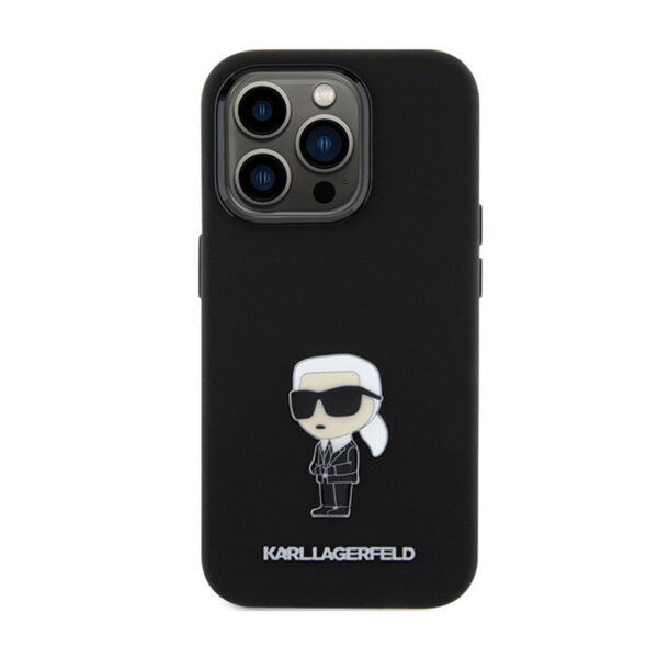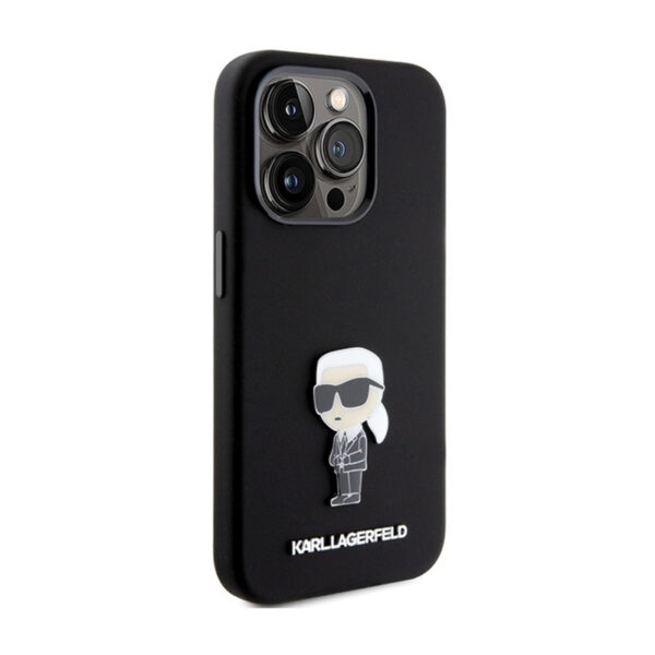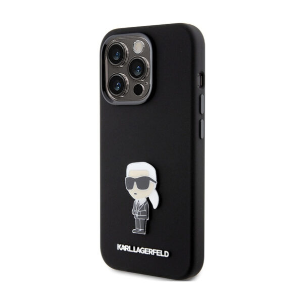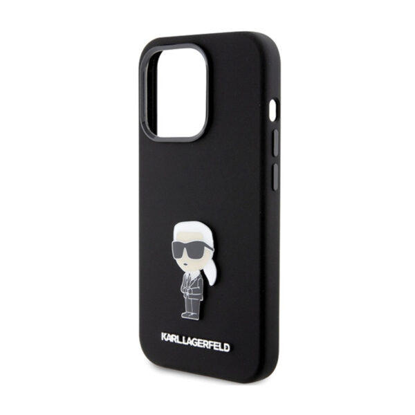 Karl Lagerfeld Silicone Ikonik Metal Pin – Apple iPhone 15 Pro Max Case juodos spalvos