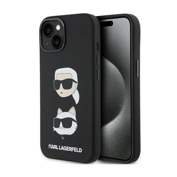 Karl Lagerfeld Silicone Karl & Choupette Heads – Apple iPhone 15 Plus Case Black