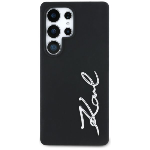 Karl Lagerfeld Silicone Metal Signature Logo Dėklas skirtas Samsung Galaxy S25 Ultra juodos spalvos