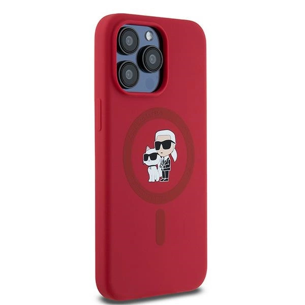 Karl Lagerfeld silikoninis Karl&Choupette Ring MagSafe Apple iPhone 15 Pro Max – dėklas telefonui raudonos spalvos