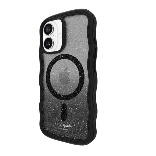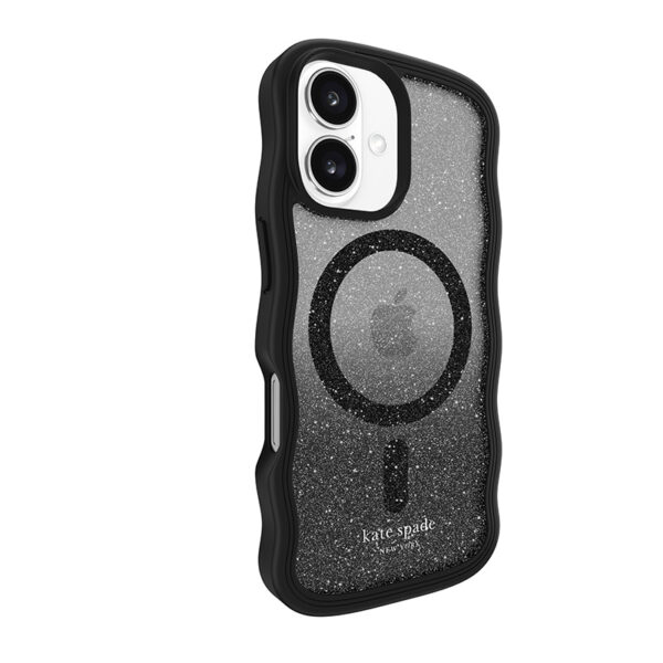 The kate spade new york Wavy MagSafe Phone Case adds a fun touch to your mirror selfies with a unique wavy design and black glitter ombré! This phone case is made to keep up with your daily to-do list thanks to a 10-foot drop protection, while built-in magnets let you wirelessly charge and accessorize in a snap.