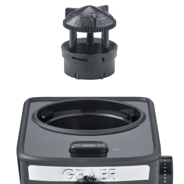 GRAEF pradinio lygio kavamalė su diskiniu malūnėliu apdoroja kavos pupeles ypač aromatingu būdu. Individualus malimo nustatymas – 17 pakopų nuo smulkaus iki rupaus – leidžia idealiai pritaikyti pupeles prie mėgstamiausio paruošimo būdo. Tuo pačiu metu, 130 vatų nuolatinės srovės variklis mala ypač tyliai. Paspaudus mygtuką ant apšviesto paleidimo/stabdymo mygtuko, mažas pagalbininkas visada į integruotą indą tiekia reikiamą kiekį maltos kavos iki 12 puodelių. Pasimėgavus kava, viršutinį malūnėlį galima lengvai nuimti valymui, kad būtų lengva pašalinti kavos tirščius iš visų vietų.