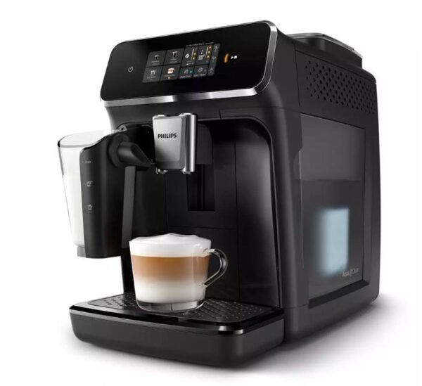 Prekės ženklas- Philips. Modelis- EP2331/10. Gylis- 43.3 cm. Plotis- 24.6 cm. Aukštis- 37.1 cm. Svoris- 8 kg. Spalva- Juoda. Korpuso medžiaga- Plastikas. Galia- 1500 W. Kavos tipas- Malta kava, Kavos pupelės. Gėrimų rūšys- Juoda kava, 2 x Espresso, 2 x Juoda kava, Karštas vanduo, Espresso, Cappuccino. Vandens talpa- 1.8 l. Talpa pienui- Taip. Garų antgalis- Ne. Puodelių pašildymas- Ne. Integruota kavamalė- Taip. Kavos receptų išsaugojimas- Ne. Su manometru- Ne. Ekranas- Taip. Kavos aparato tipas- Automatinis. Šaltų gėrimų ruošimas- Ne. Privaloma garantija- 24 mėn.