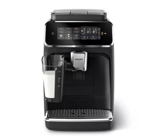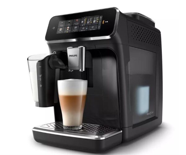 Prekės ženklas- Philips. Modelis- EP3341/50. Gylis- 43.3 cm. Plotis- 24.6 cm. Aukštis- 37.1 cm. Svoris- 8 kg. Spalva- Juoda. Korpuso medžiaga- Plastikas. Galia- 1500 W. Kavos tipas- Malta kava, Kavos pupelės. Gėrimų rūšys- Juoda kava, Latte Macchiato, 2 x Espresso, 2 x Juoda kava, Karštas vanduo, Espresso, Cappuccino. Vandens talpa- 1.8 l. Talpa pienui- Taip. Garų antgalis- Taip. Puodelių pašildymas- Ne. Integruota kavamalė- Taip. Kavos receptų išsaugojimas- Ne. Su manometru- Ne. Ekranas- Taip. Kavos aparato tipas- Automatinis. Šaltų gėrimų ruošimas- Taip. Privaloma garantija- 24 mėn.