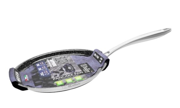 Prekės ženklas- Bollire. Artikulas- BR-1708. Skersmuo- 24 cm. Spalva- Juoda, Pilka. Medžiaga- Nerūdijantysis plienas. Paviršiaus padengimas- Keramika, Granito grūdeliai. Tinka viryklėms- Indukcinėms, Dujinėms, Elektrinėms. Su dangčiu- Ne. Skirta- Blynams.