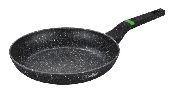 Prekės ženklas- Bollire. Artikulas- BR-1005. Aukštis- 5 cm. Skersmuo- 28 cm. Spalva- Juoda. Medžiaga- Aliuminis. Paviršiaus padengimas- Nelimpanti danga. Tinka viryklėms- Indukcinėms, Dujinėms, Elektrinėms. Su dangčiu- Ne. Galima plauti indaplovėje- Taip. Skirta- Standartinė keptuvė. Naudojimas- Pirmą kartą naudojant keptuvę, reikia išplauti šiltu muiluotu vandeniu ir nusausinti; ištepti riebalais arba aliejumi. Nenaudoti plieninių šveistukų, šiurkščių kempinėlių, orkaičių valiklių, baliklių ar stiprių abrazyvinių valiklių. Negalima perkaitinti ir kaitinti tuščios keptuvės. Defektai, atsiradę dėl perkaitinimo, nebus kompensuojami. Tinka visų rušių viryklėms, taip pat ir indukcinėms. . Garantija- 24 mėn. Papildoma informacija- Aukštis: 5 cm. Rankenos medžiaga: Bakelitas.