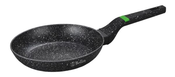 Prekės ženklas- Bollire. Artikulas- BR-1005. Aukštis- 4 cm. Skersmuo- 20 cm. Spalva- Juoda. Medžiaga- Aliuminis. Paviršiaus padengimas- Nelimpanti danga. Tinka viryklėms- Indukcinėms, Dujinėms, Elektrinėms. Su dangčiu- Ne. Galima plauti indaplovėje- Taip. Skirta- Standartinė keptuvė. Naudojimas- Pirmą kartą naudojant keptuvę, reikia išplauti šiltu muiluotu vandeniu ir nusausinti; ištepti riebalais arba aliejumi. Nenaudoti plieninių šveistukų, šiurkščių kempinėlių, orkaičių valiklių, baliklių ar stiprių abrazyvinių valiklių. Negalima perkaitinti ir kaitinti tuščios keptuvės. Defektai, atsiradę dėl perkaitinimo, nebus kompensuojami. Tinka visų rušių viryklėms, taip pat ir indukcinėms. . Garantija- 24 mėn. Papildoma informacija- Aukštis: 5 cm, Rankenos medžiaga: Bakelitas.