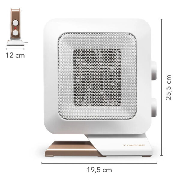 Itin lengvi, modernaus dizaino keraminis šildytuvas Trotec TFC 14 E gali būti naudojami beveik visur, kur reikalingas greitas patalpos pašildymas, tereikia šalia esančio lizdo. Nustatykite įrenginį, prijunkite prie elektros lizdo ir įjunkite – viskas! Dėka dviejų pasirenkamų šildymo lygių (700 W ir 1400 W) šildytuvas sukurs malonią šilumą jūsų svetainėje, vaikų kambaryje ar garaže, o karštais vasaros vakarais galima naudoti kaip ventiliatorių.
