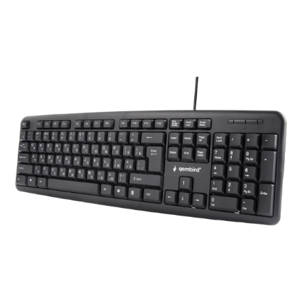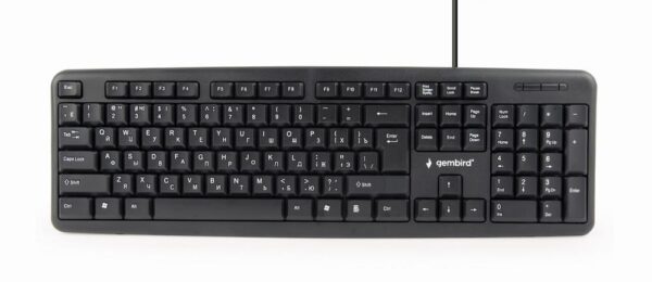 | Summary | Gembird KB-U-103-RU. Keyboard form factor: Full-size (100%). Keyboard style: Straight. Connectivity technology: Wired, Device interface: USB, Keyboard key switch: Membrane, Keyboard layout: QWERTY. Cable length: 1.5 m. Recommended usage: Office. Product colour: Black |