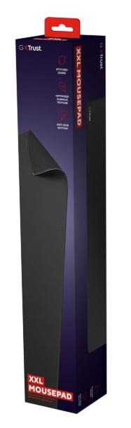 Prekės ženklas- Trust. Modelis- GXT 759 XXL. Pelės kilimėlio tipas- Minkštas. Spalva- Juoda. Paviršinio sluoksnio medžiaga- Polietilenas. Pagrindo medžiaga- Nailonas. Ilgis- 40 cm. Plotis- 90 cm. Storis- 0.3 cm. Pagalvėlė riešui- Ne.