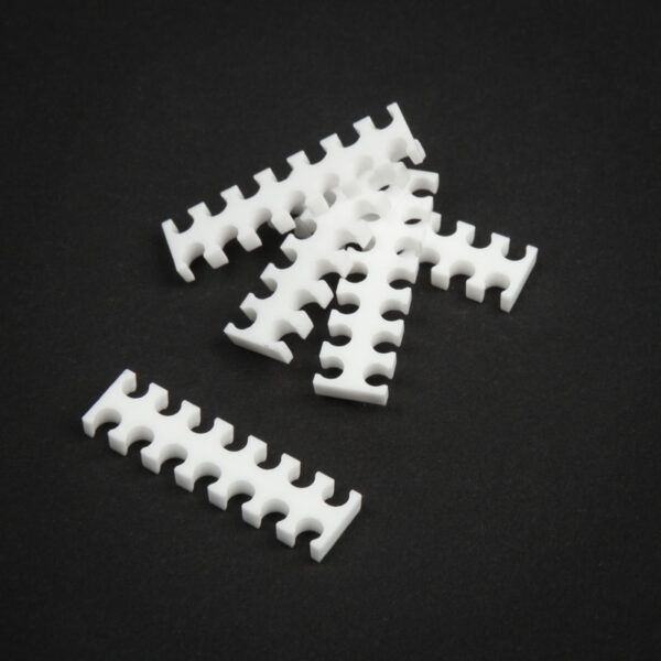 5 white cable combs with fourteen slots for 4 mm thick cables
