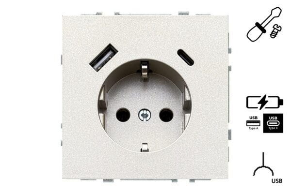 Kištukinis lizdas ir USB A+C kroviklis LIREGUS MODERN,šamp.