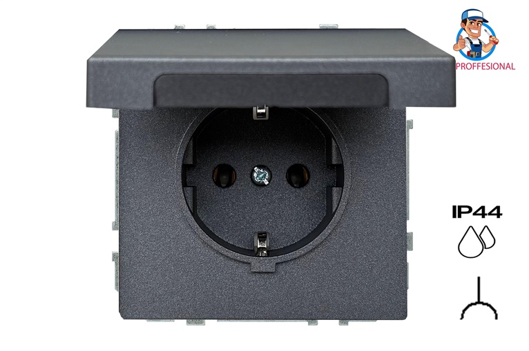 Kištukinis lizdas LIREGUS MODERN, IP44, mat.juodos spalvos