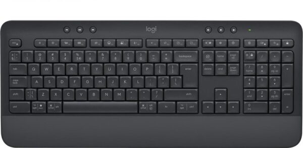 Prekės ženklas- Logitech. Modelis- K650. Klaviatūros tipas- Belaidė. Ilgis- 19.35 cm. Plotis- 45.7 cm. Aukštis- 2.4 cm. Spalva- Juoda. Jungties tipas- Bluetooth. Klaviatūros kalba- Anglų. Klavišų tipas- Membraniniai. Multimedijos klavišai- Taip. Atskiras skaičių blokas- Taip. Maksimalus veikimo nuotolis- 10 m. Atsparumas vandeniui- Ne. Naudojamos baterijos- AA. Pelė komplekte- Ne. Garantija- 24 mėn.